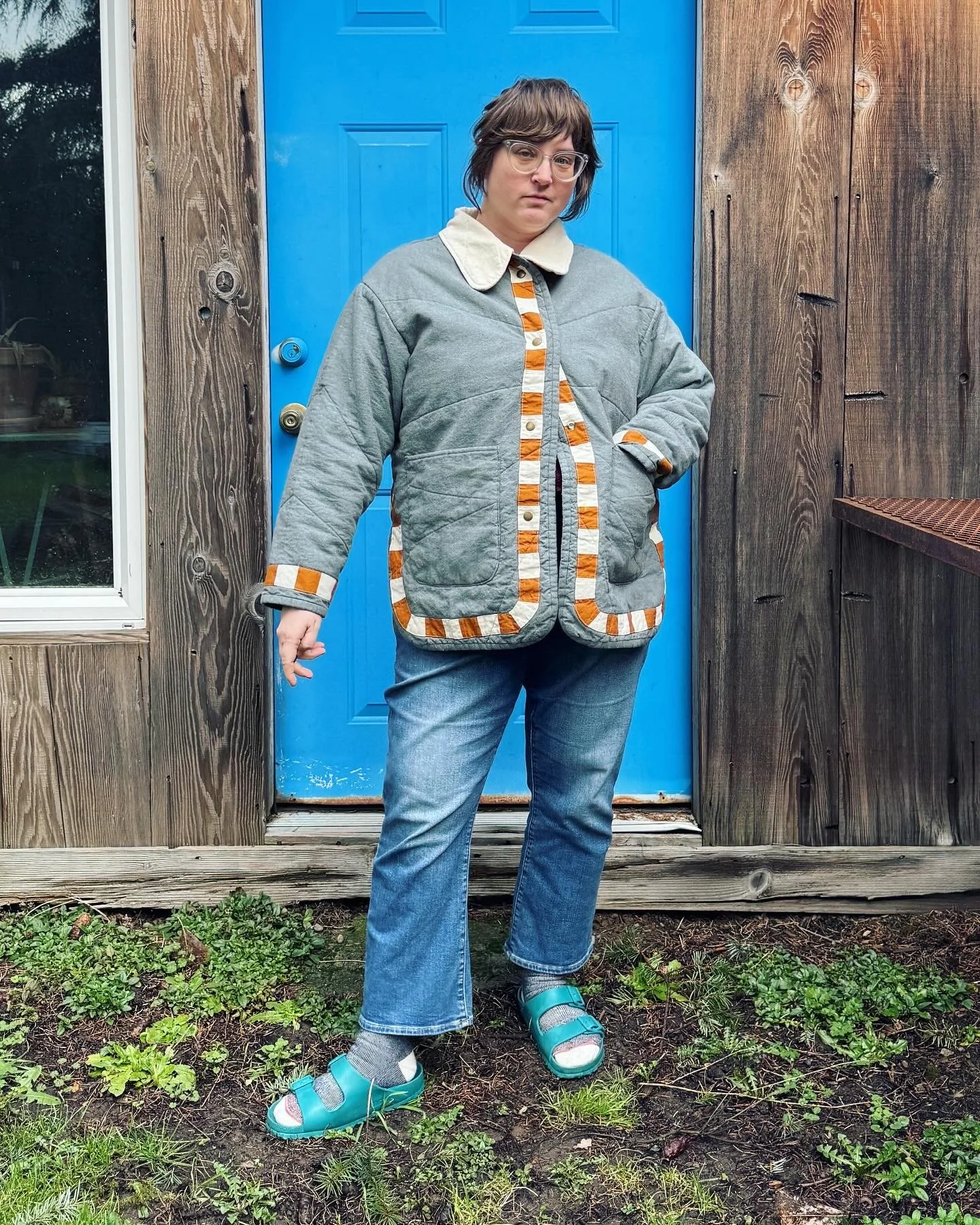 This quilt coat was part of a series of art quilt coats, made in 2024.